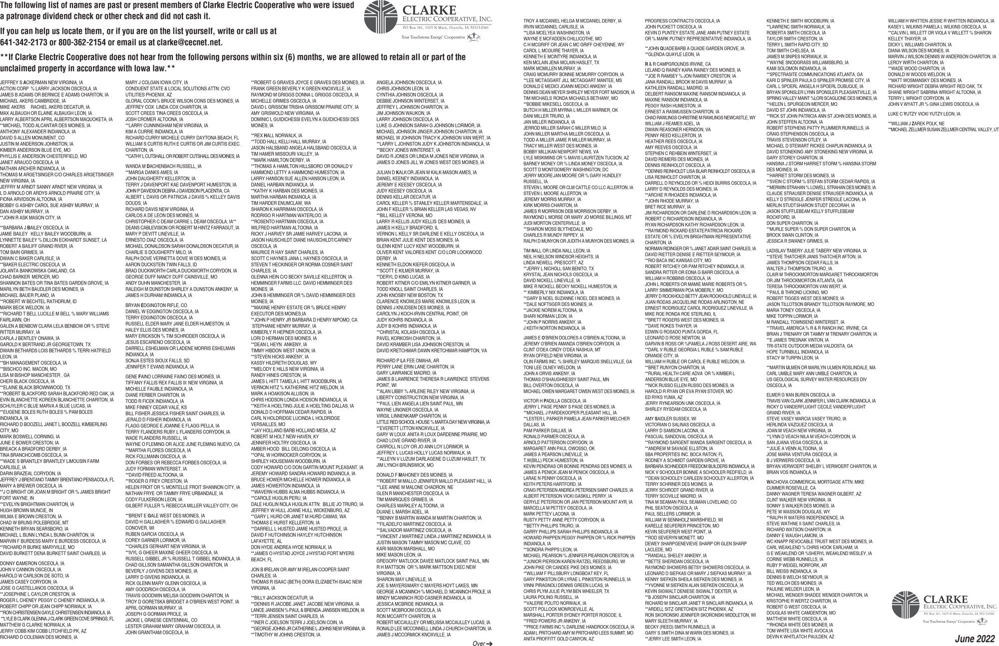 - Estates of deceased persons who were patrons of Clarke Electric can request early payout